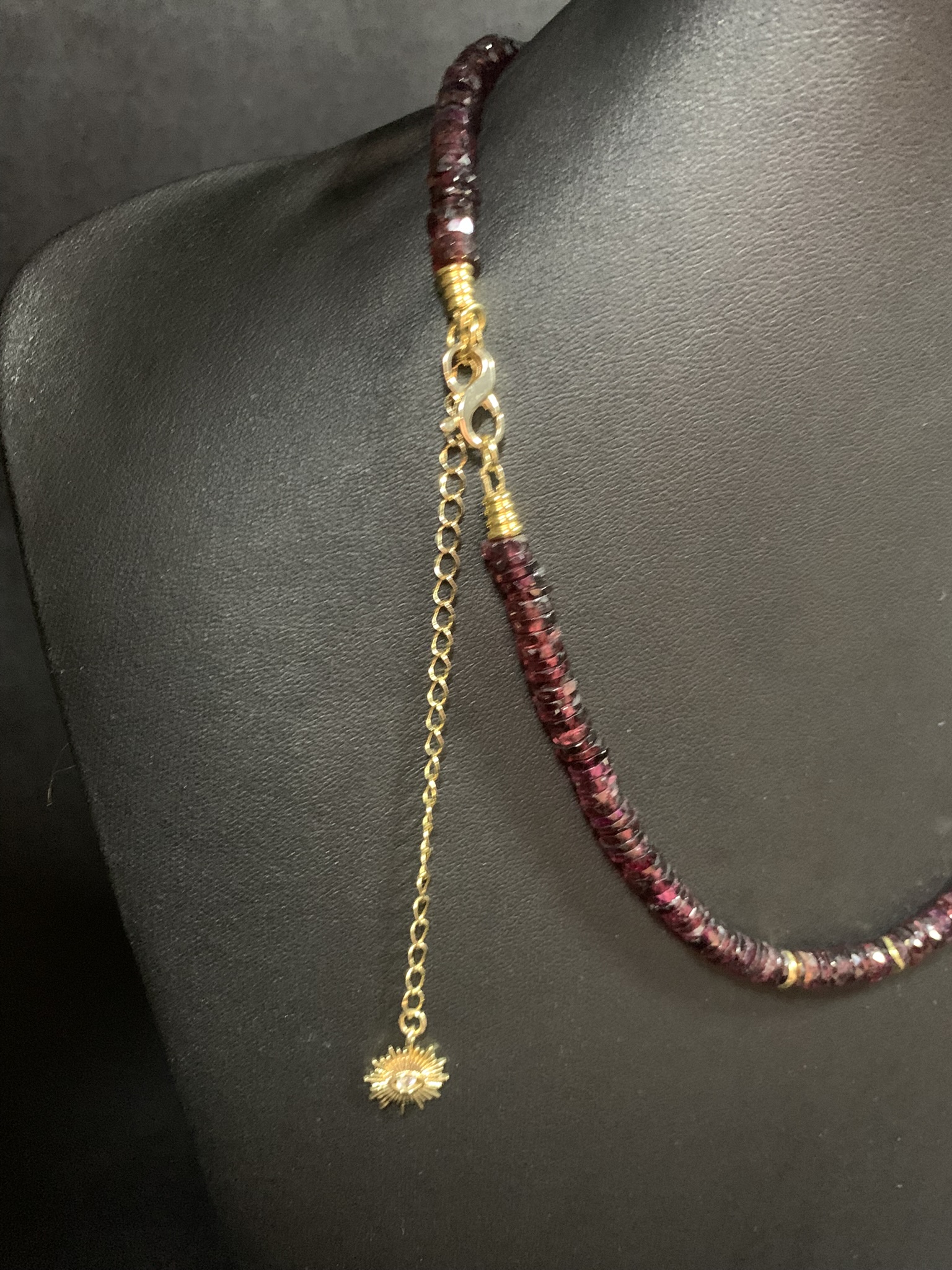 Matériaux : Perles heishi en grenat naturel facetté & verre de Murano soufflé à la main